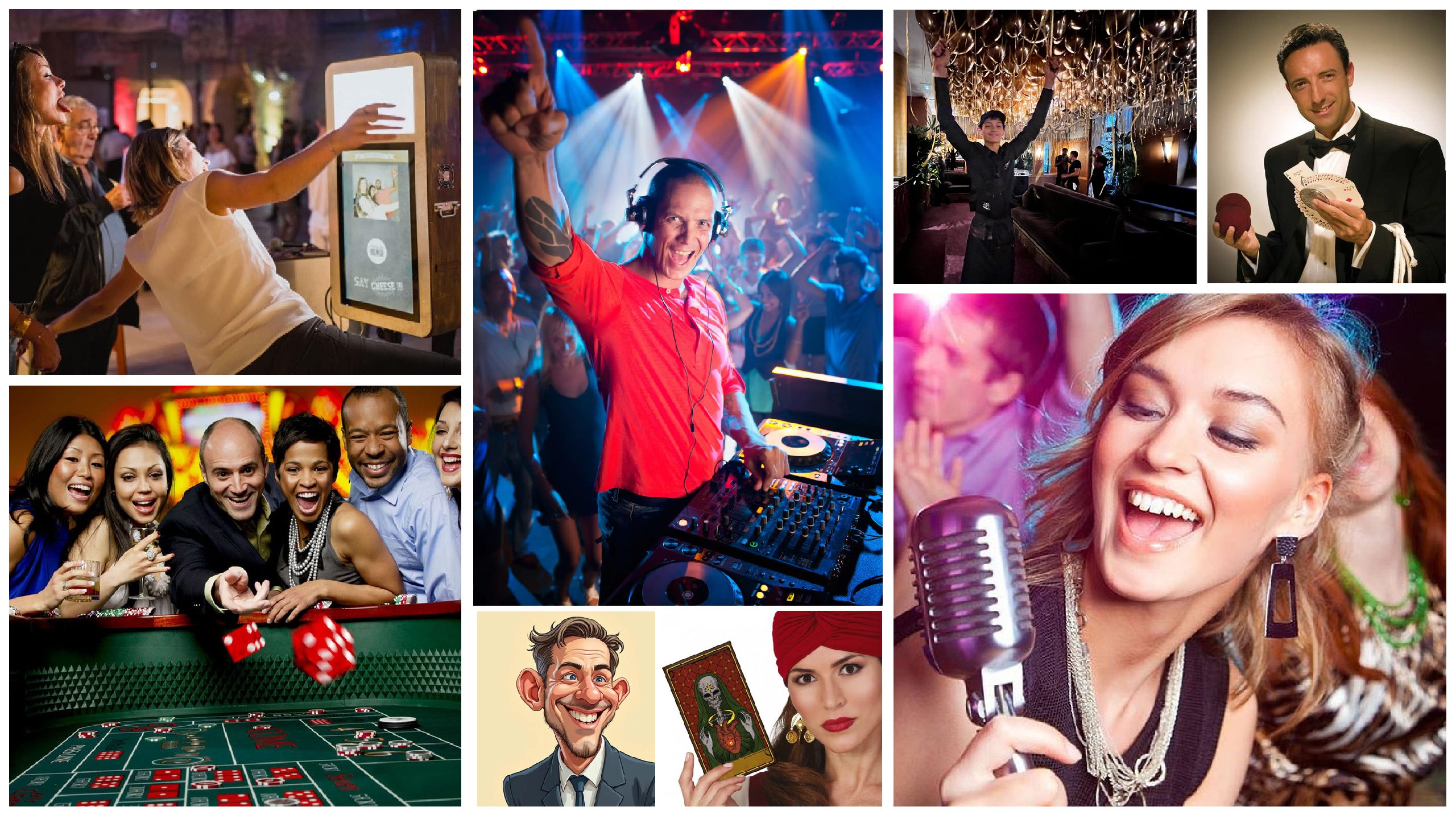 Que vous souhaitiez un DJ, un photobooth, des musiciens, une diseuse de bonne aventure, ou même un caricaturiste, notre gamme d’options saura répondre à toutes vos envies.