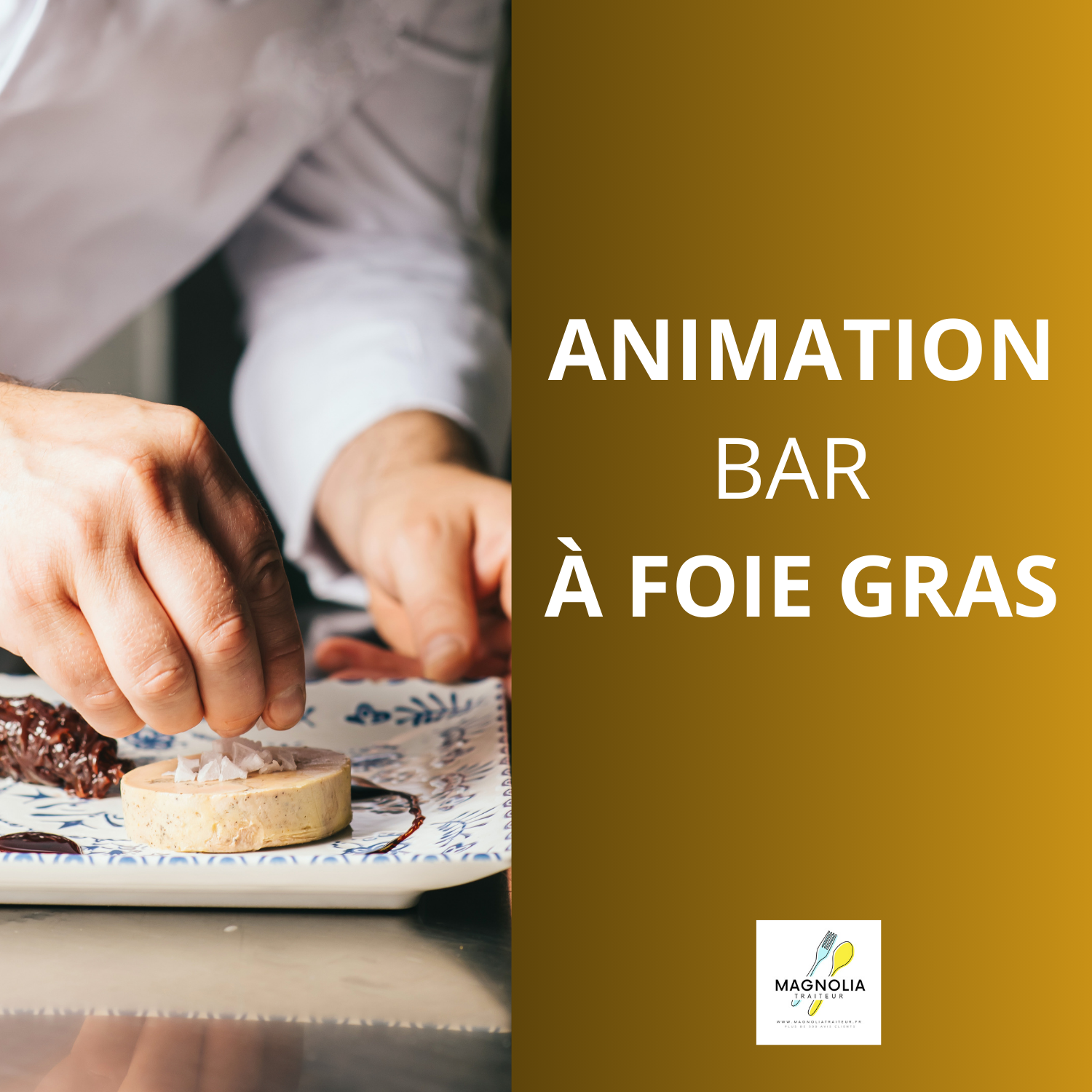 Opter pour notre animation bar à foie gras, c’est choisir l’excellence et l’élégance pour votre événement. Que ce soit pour une réception privée ou un événement d’entreprise, nos services sur mesure sauront satisfaire les palais les plus exigeants.