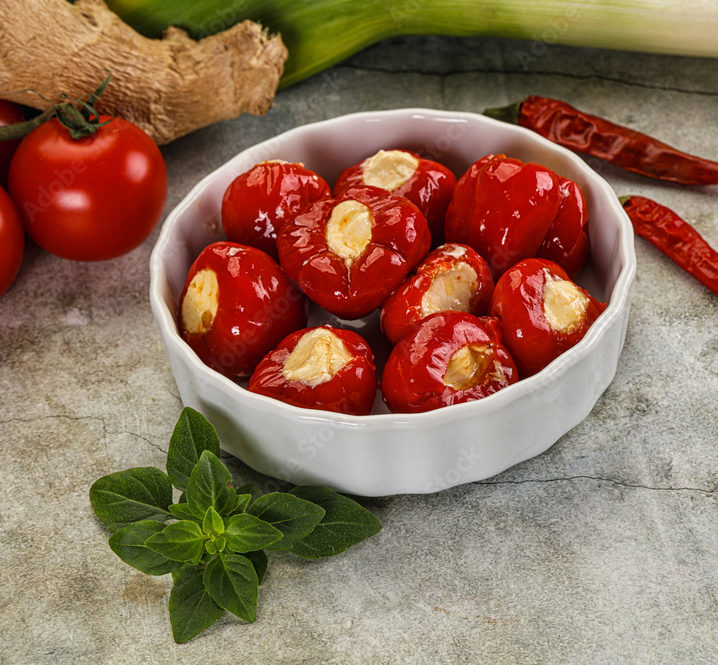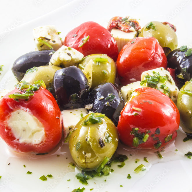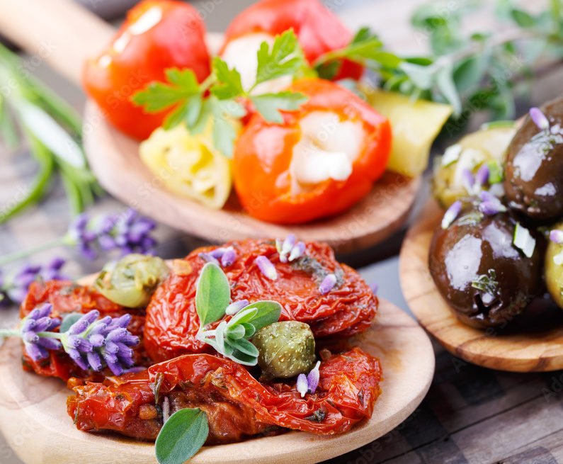 - Tomates confites marinées : Tomates marinées dans l’huile d’olive avec des herbes aromatiques (50 grammes par personne)