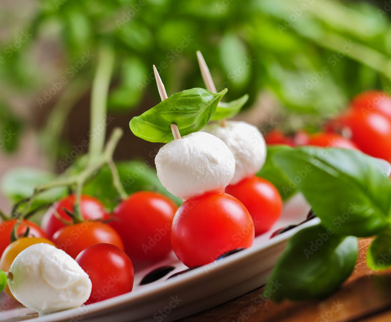 - Brochettes de Mozzarella di bufala et de petites tomates : Fromage italien à pâte filée, doux et crémeux (3 brochettes par personne).