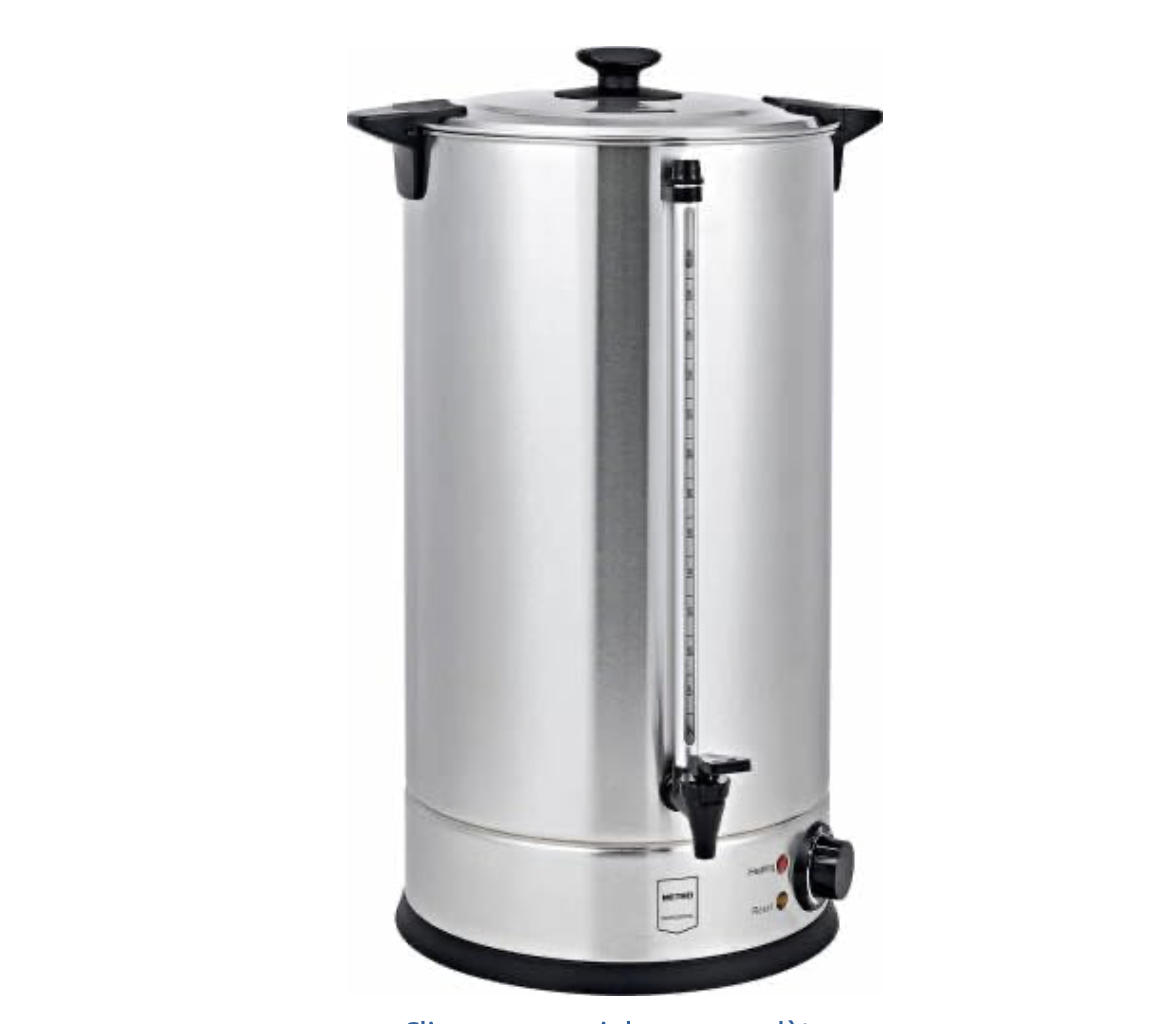 Avec une puissance absorbée de 1300 W (220 – 240 V), une fonction d’ébullition continue de l’eau et un robinet facile à utiliser, cet appareil est absolument indispensable, en particulier dans le secteur de la restauration. Le cycle d’infusion dure environ 30 minutes et permet de préparer 40 tasses. Grâce à son thermostat réglable de 55 °C à 100 °C maximum et à son élément chauffant en aluminium, cet article 2en1 comprend une fonction de maintien de la chaleur. De plus, il contient un indicateur de chauffage et de réinitialisation ainsi qu’une protection contre la surchauffe avec réinitialisation manuelle.