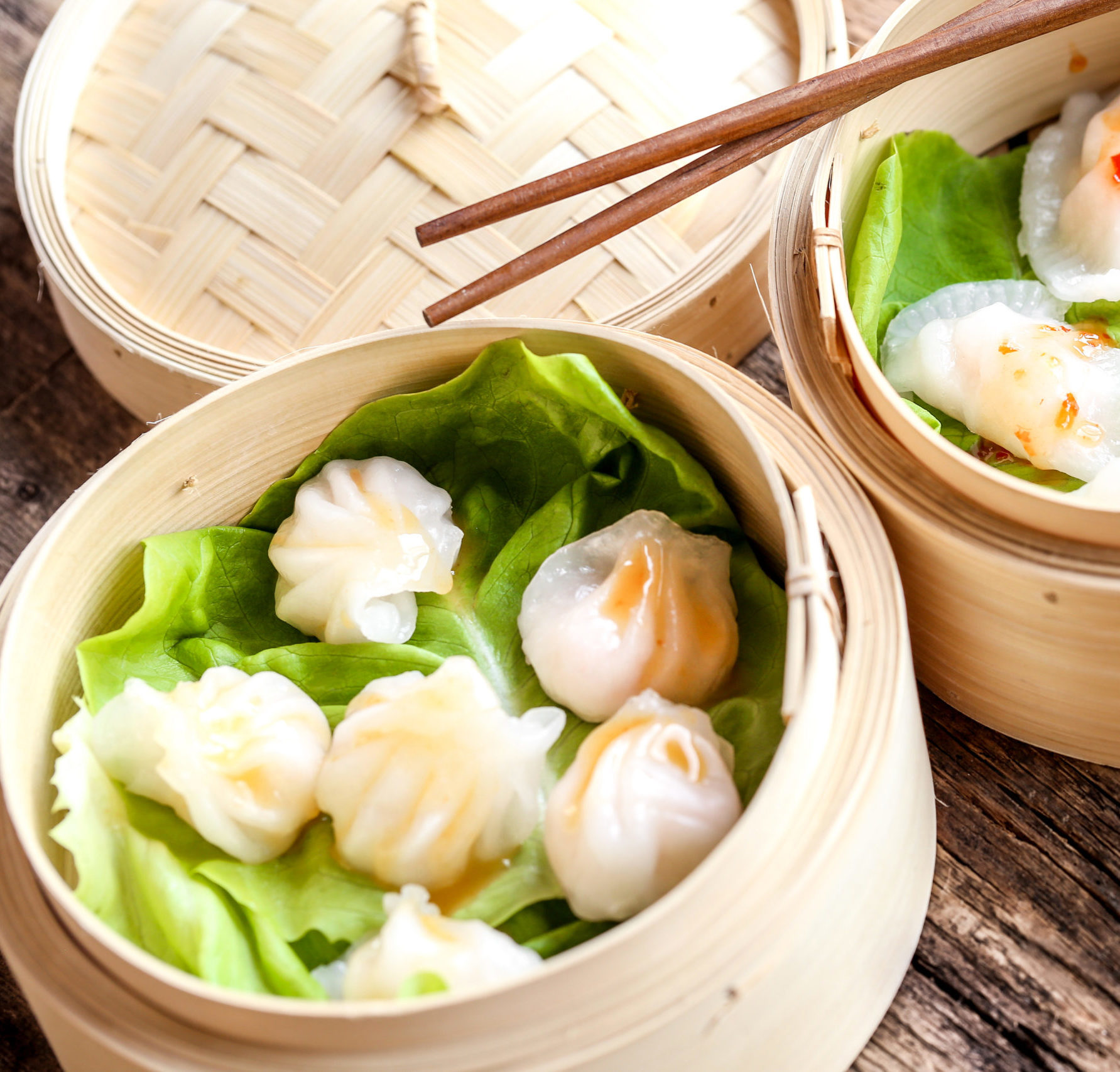 • Dim sum: har gow, siu mai (ou versions végétariennes)