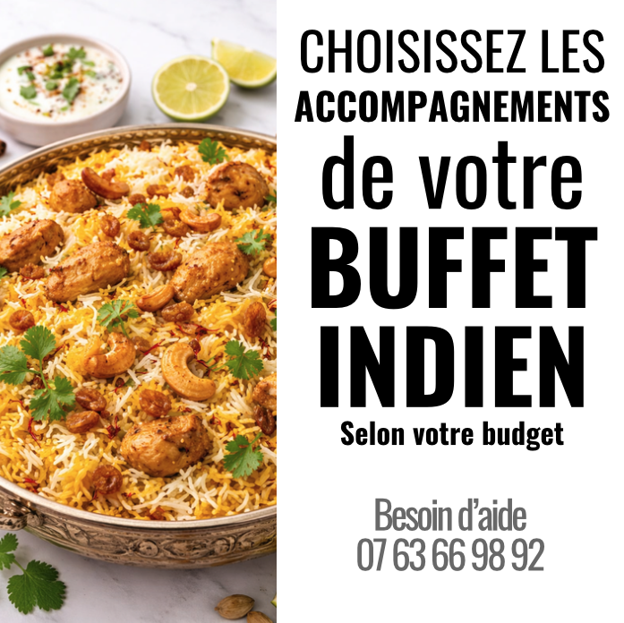 Chez Magnolia Traiteur, nos accompagnements indiens sont conçus pour compléter parfaitement vos plats principaux et faciliter la constitution d’un buffet harmonieux et convivial. Nous proposons une sélection équilibrée qui allie chaleur des épices et diversité des textures: riz basmati nature ou parfumé au safran, pains traditionnels tels que naan nature, garlic naan et butter naan, et parathas; des compléments frais comme raïta à base de yaourt et concombre, chutneys colorés (menthe-tamarin, coriandre), et une salade légère type kachumber; des papadums croustillants et des pickles (achar) pour des touches d’acidité et de piquant. Tous nos accompagnements peuvent être servis chauds ou à température ambiante, présentés en portions buffet prêtes à prendre, et adaptables en fonction des régimes ( sans gluten, sans lactose, végétariens ). Notre équipe assure une présentation soignée et une gestion adaptée des allergènes pour garantir sécurité et plaisir à vos convives.