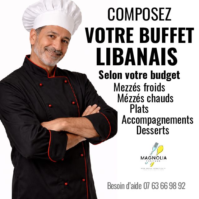 Composez votre buffet libanais selon votre budget et votre nombre d’invités comme vous le désirez en choisissant les entrées, les plats, les accompagnements et les desserts de votre choix.