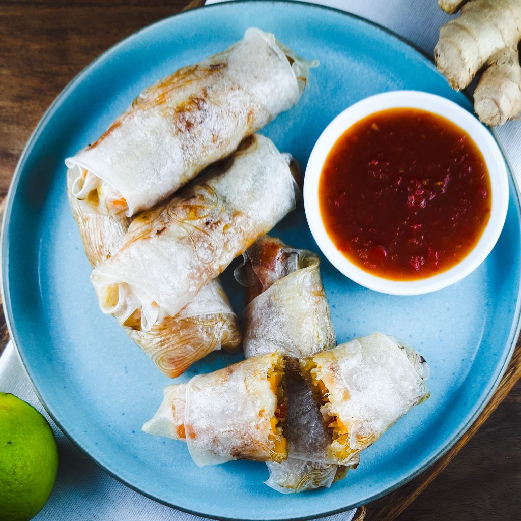 - Chuan Juan : Nems au poulet et aux légumes « maison » servis avec leur feuilles de salade et de la menthe fraîche.