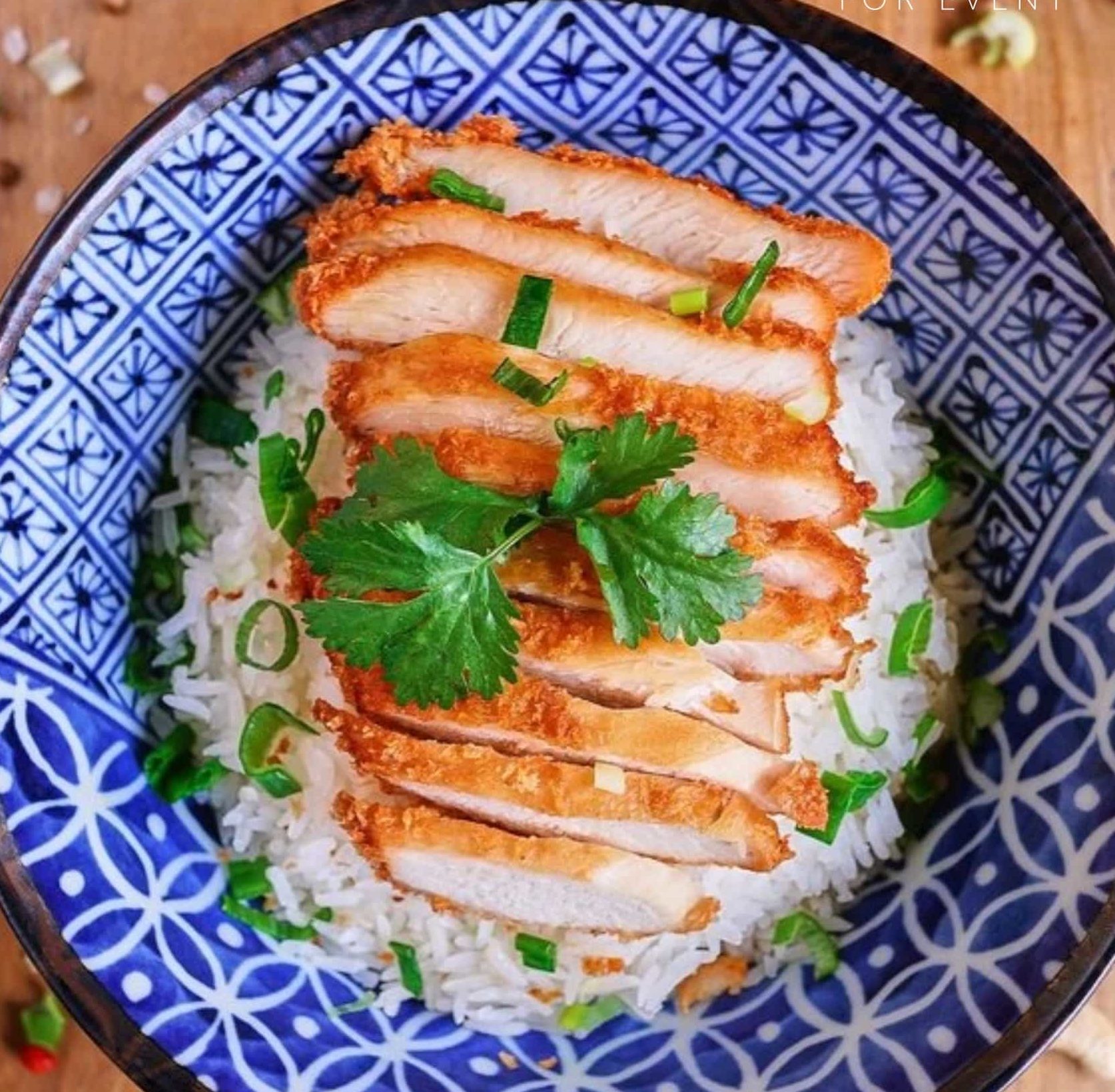 - Ji pai fan : Riz parfumé sauté aux œufs et à la ciboulette, accompagné de poulet croustillant.