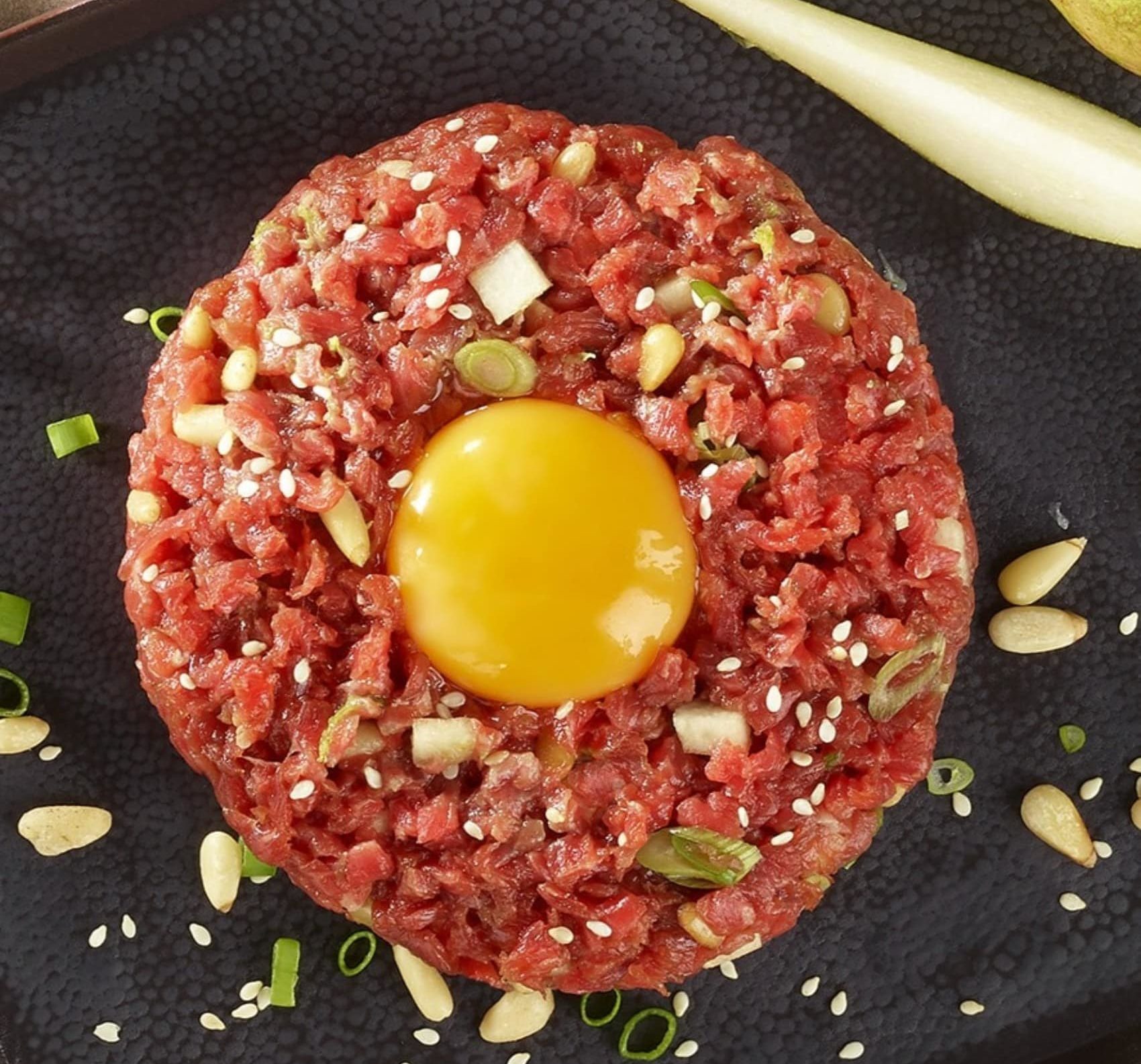 - Le tartare Coréen : Tartare de boeuf épicé, cuisiné à la coréenne, accompagné un bol de riz blanc.