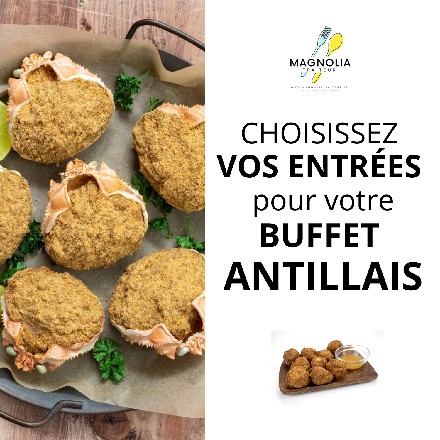 Pour composer votre buffet antillais sur Magnolia Traiteur, découvrez notre sélection d’entrées antillaises qui invitent vos convives à un vrai voyage des îles: Boudin au crabe des Antilles; Boudin à la morue antillais; Boudin à la crevette antillais, Accras de légumes antillais, Achard de légumes antillais, Chiquetaille de poulet antillais, Chiquetaille de morue antillais, Accras de morue antillais; etc….