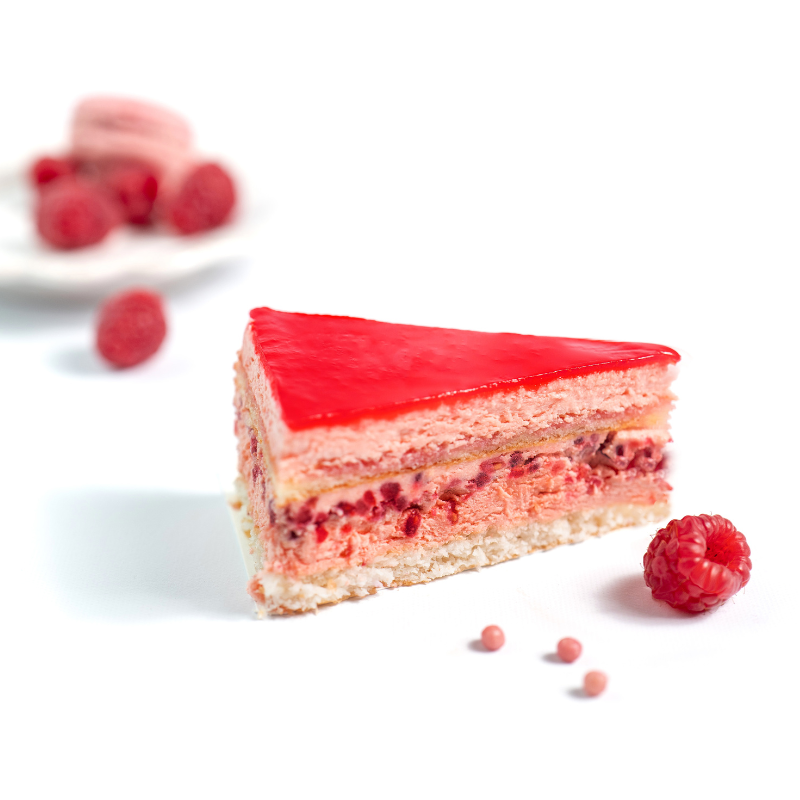 Laissez-vous séduire par la Framboisine, où l’intensité acidulée de la mousseline framboise rencontre la gourmandise réconfortante d’une génoise à la noix de coco. Des brisures de framboises sont insérées pour un croquant juteux et irrésistible.