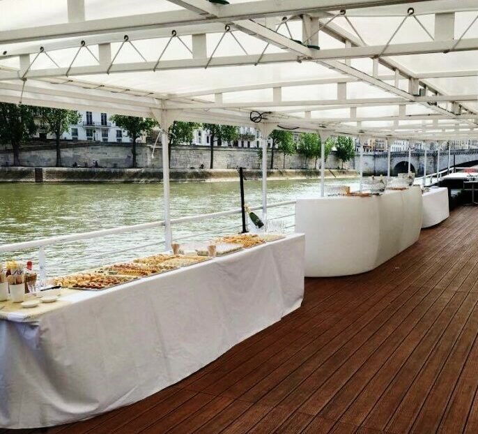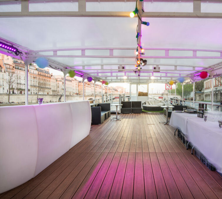 Cette péniche, moderne et atypique avec une vue incroyable sur Notre-Dame de Paris vous acceuille sur deux niveaux totalement aménageables en fonction de vos besoins (soirées dansantes, cocktail dinatoire, séminaire, after work), avec grande terrasse couverte et aménagée pour accueillir vos invités en toute saison
