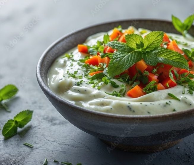 Notre Laban au concombre et yaourt est une préparation fraîche et veloutée inspirée du Levant: labneh (yaourt égoutté) onctueux accompagné de morceaux croquants de concombre, relevé d’une touche légère d’ail, d’huile d’olive et d’herbes aromatiques. Frais et parfumé,