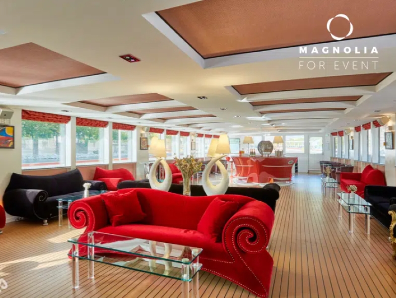 Idéal pour l’événementiel, ce majestueux bateau offre un total de 210 m² de salons intérieurs permettant d’accueillir jusqu’à 150 personnes en cocktail, le tout complété par un vaste pont de 160 m² pour une réception inoubliable sur l’eau.