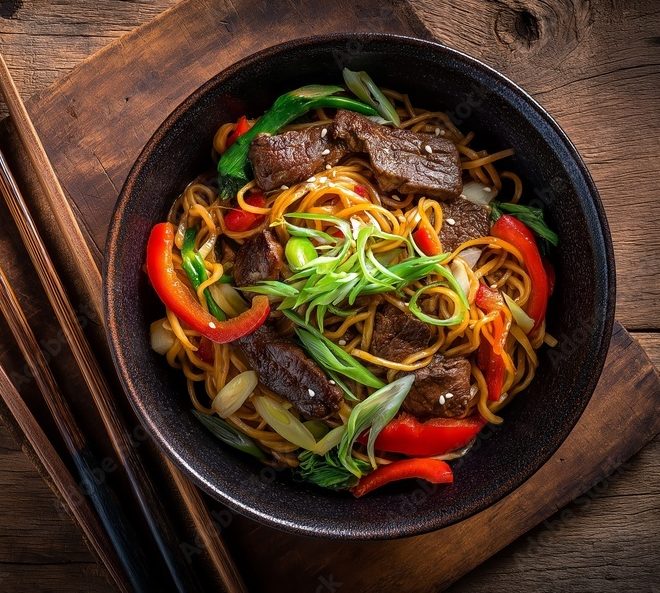 Notre version de nouilles sautées est préparée au wok à feu vif pour des grains bien séparés, des légumes croquants et une sauce parfumée qui enveloppe les protéines au choix. Idéales pour buffets, réceptions et repas d’affaires, elles allient convivialité et élégance dans une présentation facile à servir.