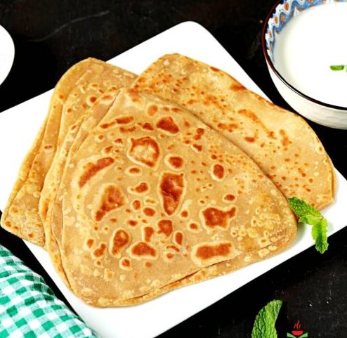 Le paratha est un pain plat indien, moelleux et parfois feuilleté, principalement préparé à partir de farine de blé (atta), d’eau et de sel; selon les recettes, on peut ajouter du yaourt ou du ghee pour enrichir la mie et favoriser le feuilletage, et parfois de l’huile dans la pâte pour la rendre plus souple. La pâte est pétrie jusqu’à obtenir une texture élastique, divisée en portions, étalée en cercles, puis pliée et roulée pour former des couches (lachha paratha) ou simplement aplatie et cuite sur une tawa chaude avec un peu de matière grasse jusqu’à ce qu’elle soit dorée et légèrement croustillante à l’extérieur. Le paratha peut être nature ou farci (aloo, paneer, methi, ou autres légumes) et se sert chaud, en accompagnement des currys ou dal, ou comme base pour des garnitures aromatiques; selon les régions, des ajouts comme de l’ail, de la coriandre, ou des graines (ajwain) peuvent être intégrés pour varier les arômes.