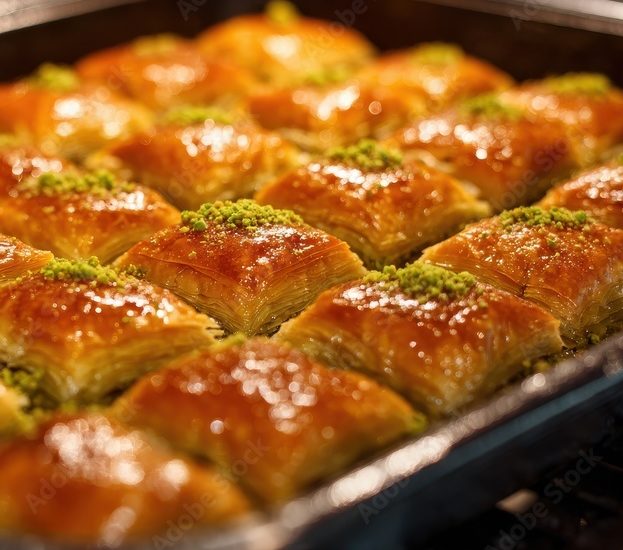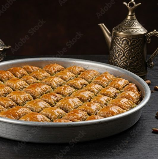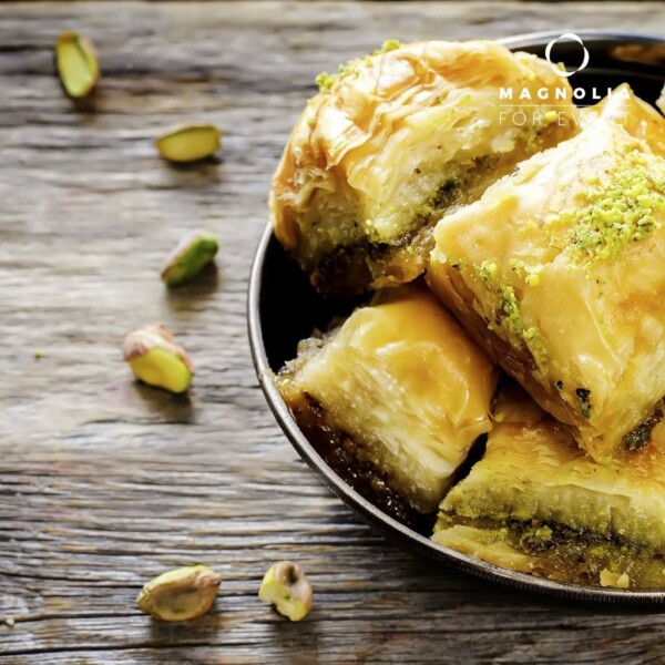 Le Baklava ou Baklawa est un dessert traditionnel du Moyen-Orient réputé pour sa finesse, son goût étonnant & ses ingrédients frais, présentés dans une grande boîte élégante pour le plaisir de vos invités. Nos Baklawas sont produits en utilisant des ingrédients frais, sans conservateurs, sans colorants artificiels, sans arômes artificiels, sans OGM. pour un goût, une fraîcheur et un croquant améliorés.