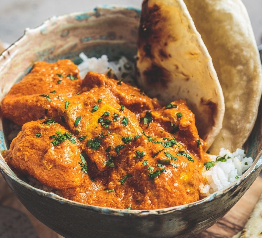 Le poulet Madras est un curry indien originaire de la région de Madras (Chennai), réputé pour son caractère piquant et sa sauce tomate épicée. La préparation commence par faire revenir des oignons avec de l’ail et du gingembre, puis on y ajoute des épices telles que la poudre Madras, le cumin, la coriandre et le curcuma, sans oublier du piment rouge pour le feu stimulant. On incorpore ensuite des tomates écrasées ou en purée et un peu d’huile ou de ghee, et le poulet (parfois mariné au préalable dans du yaourt épicé) mijote dans cette sauce jusqu’à ce qu’il soit tendre et que la sauce devienne veloutée et corsée; selon les versions, on peut ajouter du lait de coco pour l’onctuosité ou un peu de tamarin pour l’acidité. Le plat est généralement servi chaud avec du riz basmati ou du naan, et peut être relevé à souhait par plus de piment ou d’herbes fraîches selon les goûts.