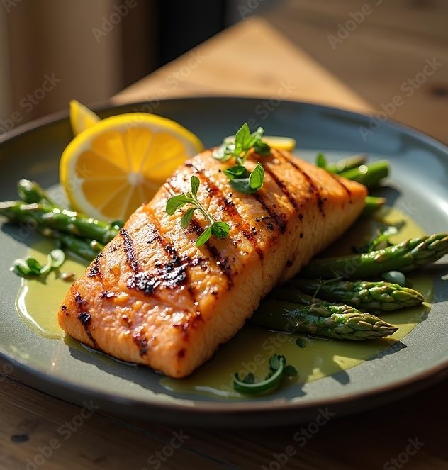 - Dos de saumon rôti à la vanille, tagliatelles aux petits légumes.