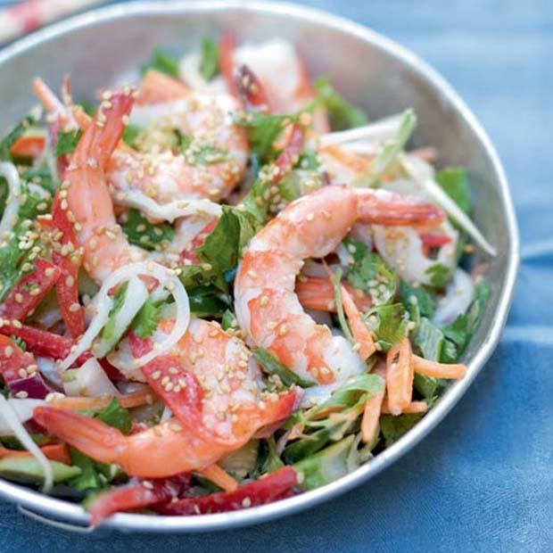 La salade de crevettes indienne est une préparation fraîche et parfumée qui associe la douceur iodée des crevettes à des légumes croquants et des herbes aromatiques. On y mélange des crevettes juste cuites et refroidies avec du concombre, des tomates et parfois de l’oignon rouge, auxquels s’ajoutent des touches de coriandre et de menthe, un zeste de citron vert et un filet d’huile pour lier les saveurs. Selon les versions, on peut intégrer des dés de mangue ou de pomme pour une note sucrée, ainsi que des épices douces comme garam masala, cumin et piment pour un caractère équilibré entre fraîcheur et piquant; certaines variantes prévoient aussi une légère liaison au yaourt ou à la mayonnaise pour une texture plus onctueuse. Le tout est servi frais en entrée ou en accompagnement, idéal avec du riz basmati ou du pain naan et un chutney léger pour rehausser les arômes.