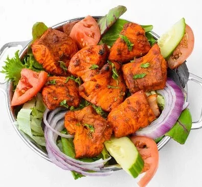 Le saumon tikka est une variation indienne où des morceaux de saumon frais, éventuellement désossés, sont marinés dans une pâte épaisse à base de yaourt nature, d’ail et de gingembre, puis parfumés avec des épices comme garam masala, cumin, coriandre, curcuma et paprika, avec un filet de jus de citron et un peu d’huile pour lier et adoucir les arômes. Après absorption de la marinade, les morceaux sont enfilés sur des brochettes et grillés au tandoor ou sous un gril jusqu’à obtenir une exterior légèrement caramélisée et une chair tendre et rosée à l’intérieur. Le plat se sert souvent avec des chutneys (menthe ou tamarin), des quartiers d’oignon et de citron, et peut être accompagné de riz basmati ou de naan; certaines recettes offrent des variantes avec des herbes fraîches ou des touches piquantes selon les régions.