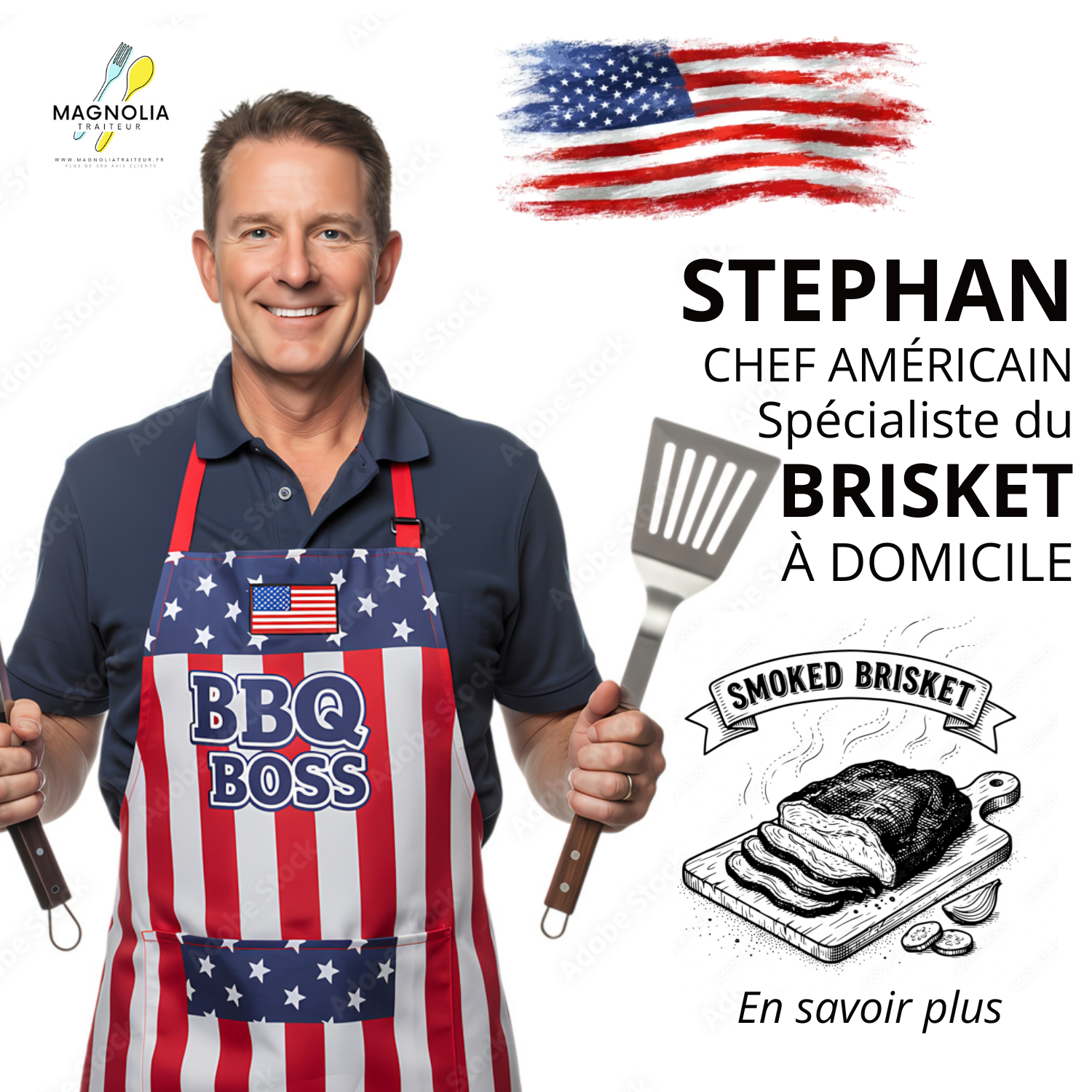 - Le Spectacle : Une découpe minute et un échange chaleureux entre Stephan et vos convives à qui il expliquera tous les secrets du BRISKET.