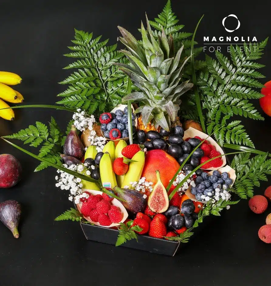 Choisissez la ou les corbeilles de fruits MAGNOLIA TRAITEUR la touche indispensable pour un buffet inoubliable.